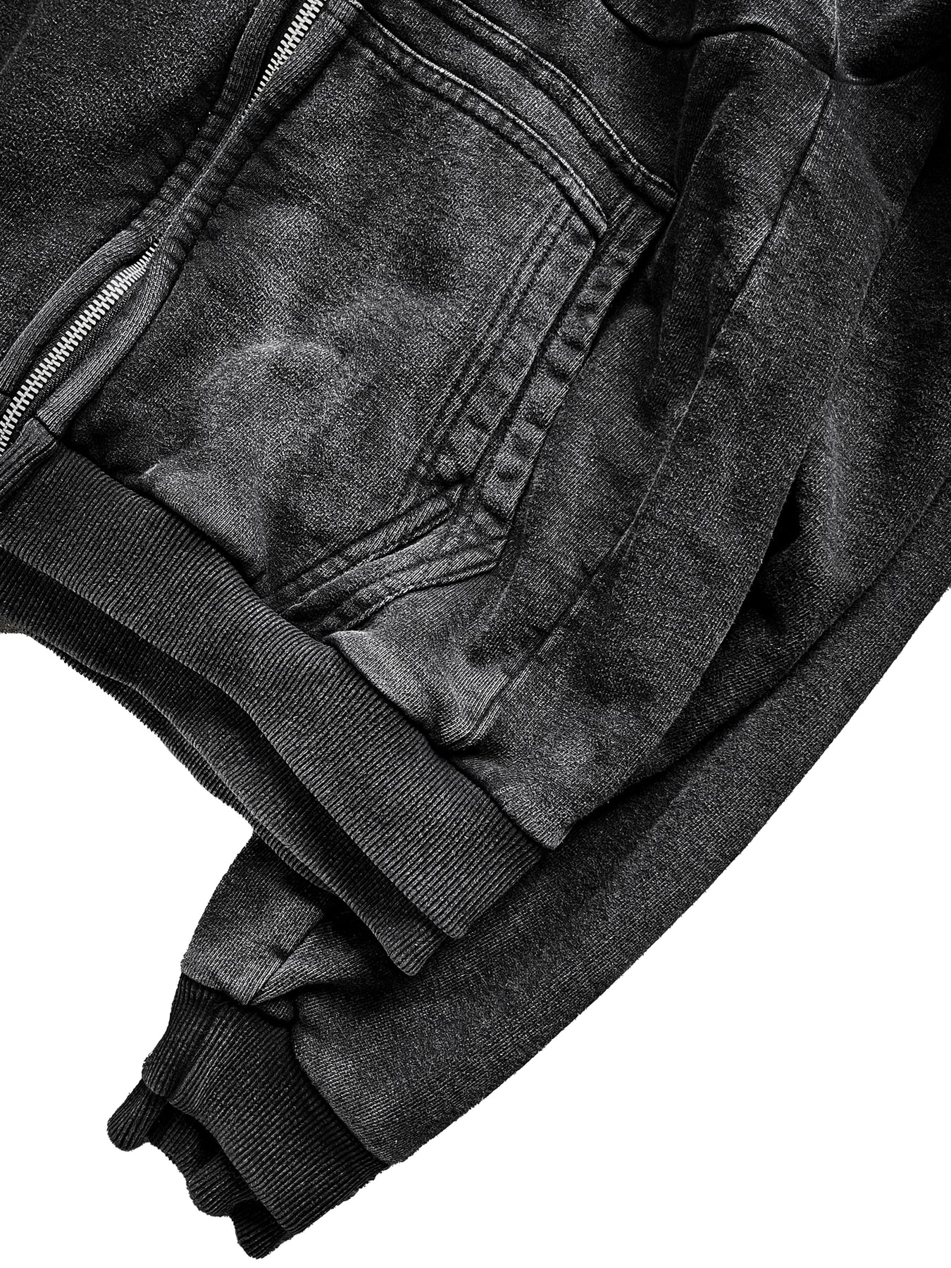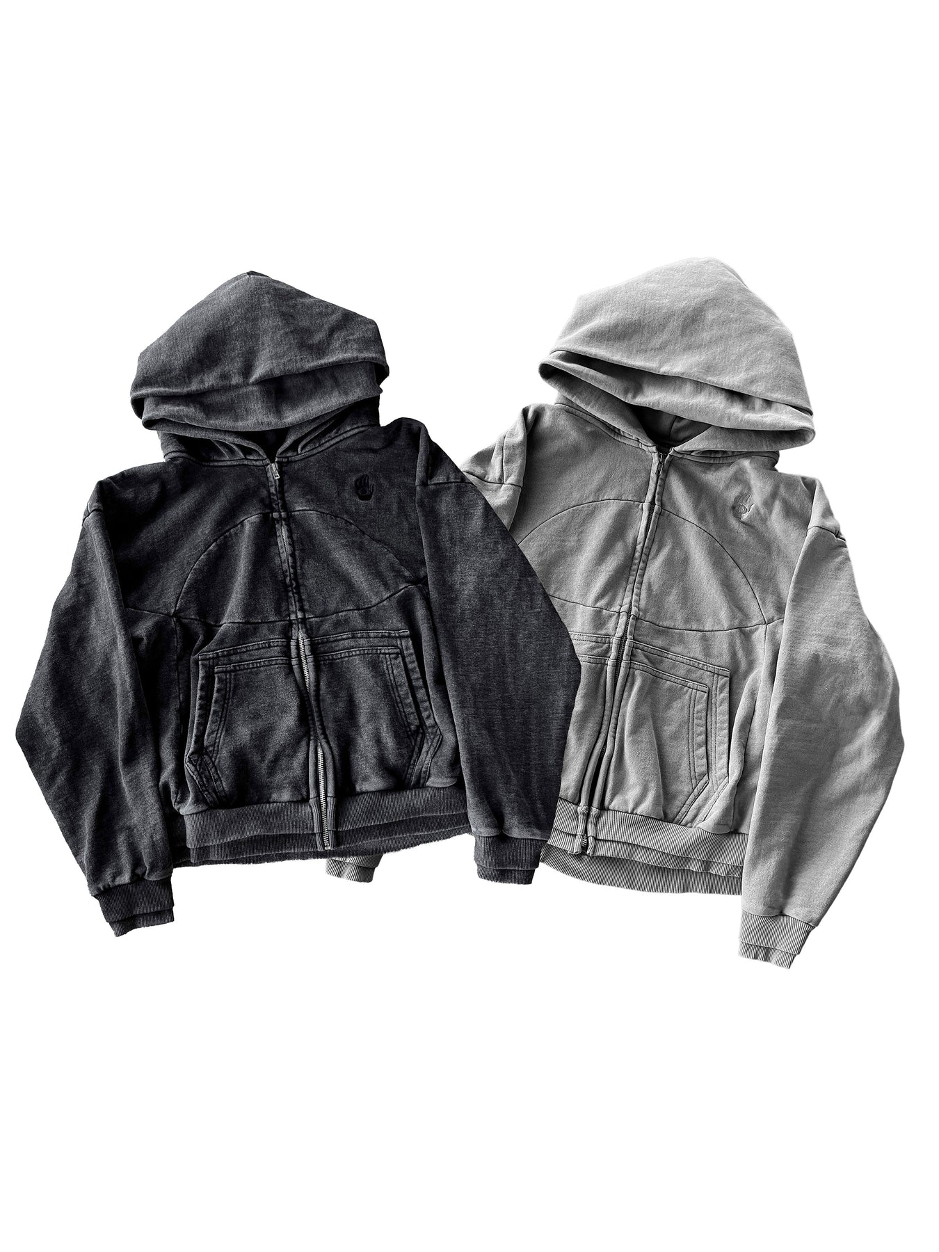 We are happy to finally introduce the zip-up counterpart to our popular 'two-fold' baggy sweatpants. This is the perfect heavyweight zip-up to complement your baggy sweats during the colder fall/spring months!